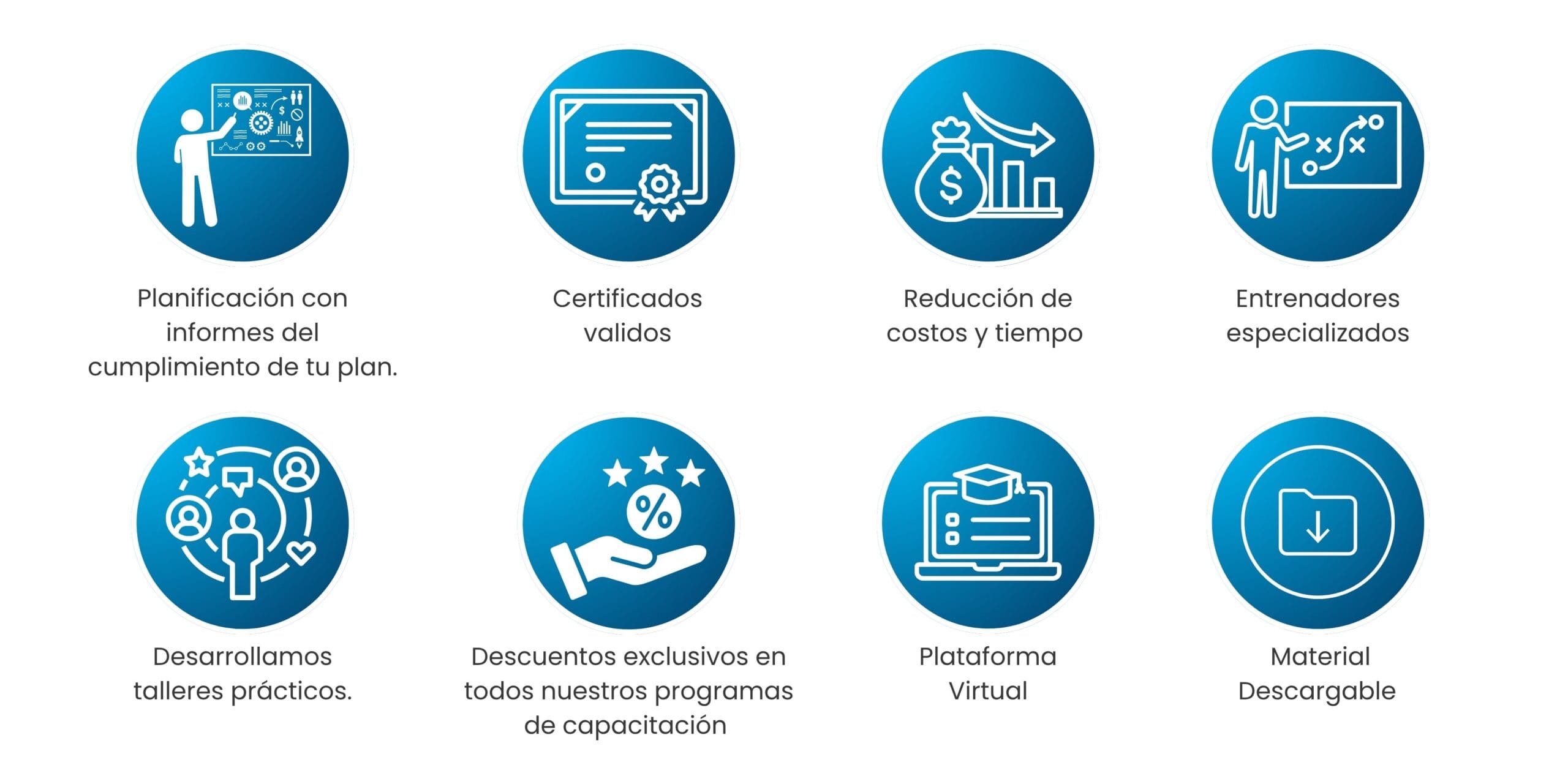Ofrecemos un catálogo completo de temas, adaptados a los sectores productivos y niveles de riesgo